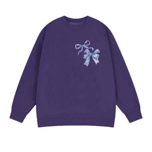 Crewneck Sweatshirt with Purple Bow Detail