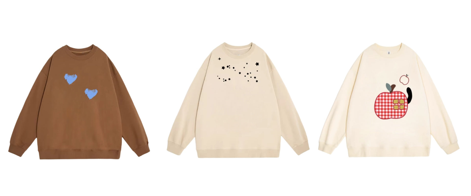 Light Brown Sweatshirt with Blue Heart Print